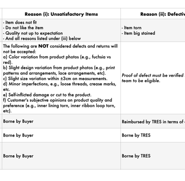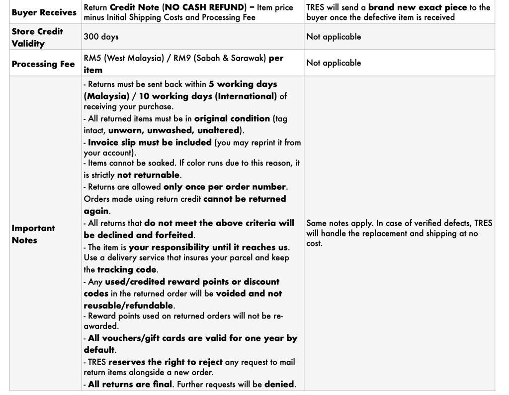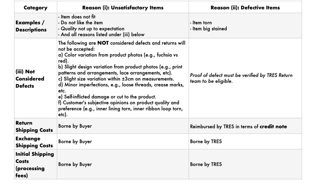 TRES reserves the right to reject any request to mail return items alongside a new order.